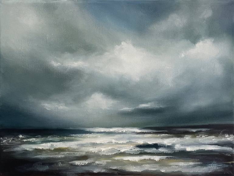 This mesmerizing Seascape Oil Painting vividly captures the dance between the heavens and the restless sea. The dramatic skies, heavy with emotion, sweep across the canvas in bold strokes, their turbulent clouds mirroring the untamed energy of the waves below. Each brushstroke breathes life into the...