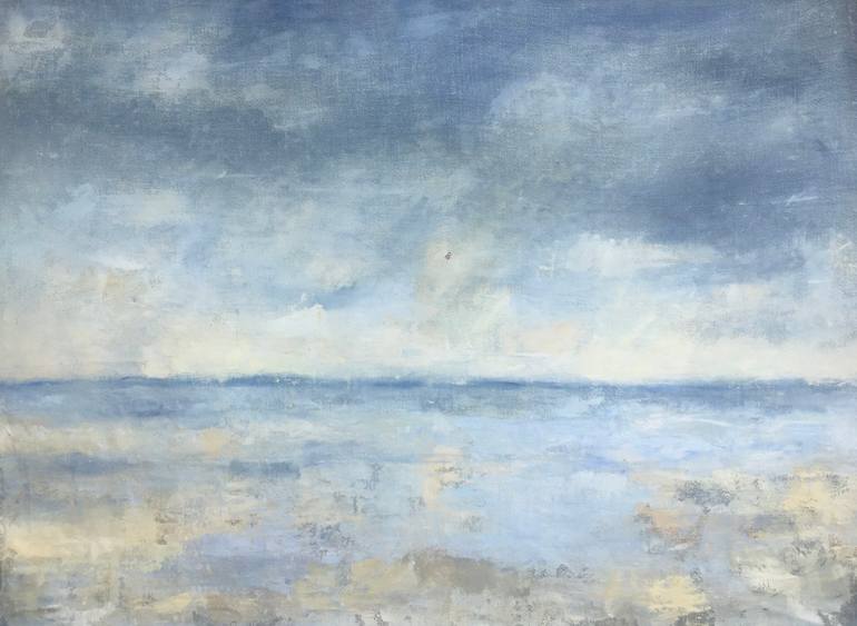 In my country's landscapes. The sea, in Montoya where I spent the quarantine. The atmosphere and climate which I experienced mostly.. I painted on a raw linen, very soft and noble.