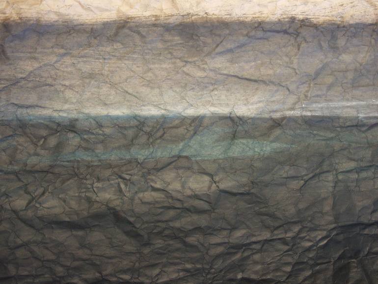 This work was created during my crushed paper phase, I used to create a work at a stage then crush the paper, flatten and continue to rework. Doing so broke the capillaries of the paper and enabled the inks and paints to absorb at different rates, providing a unique look and feel.