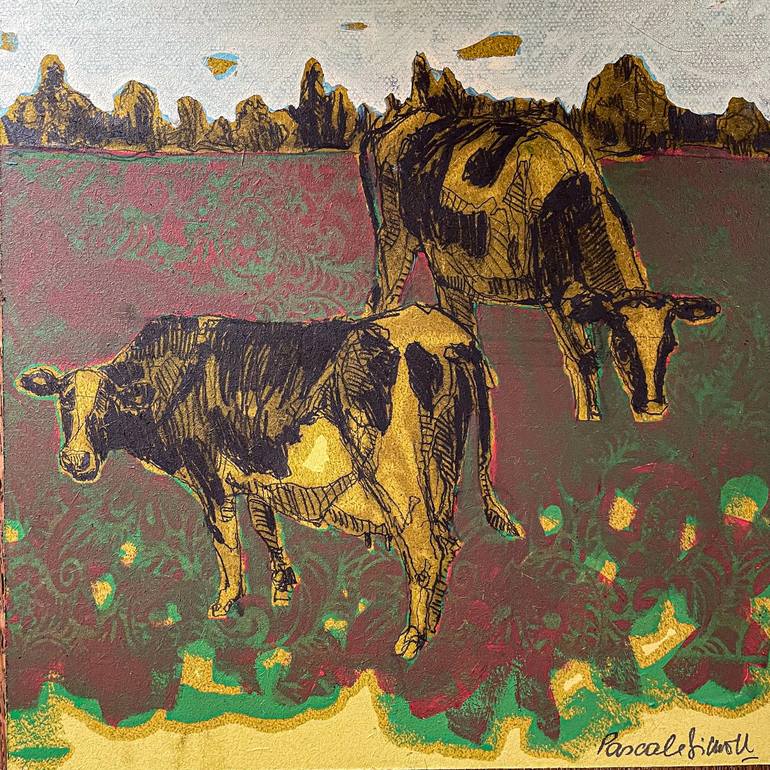 The "Vaches de Saison" collection by Pascale Simon features a series of captivating paintings that blend the rustic charm of cows with the dreamlike allure of imaginative landscapes. Each painting showcases cows set against natural backdrops, but with a twist of contrasting, unreal colors that evoke...
