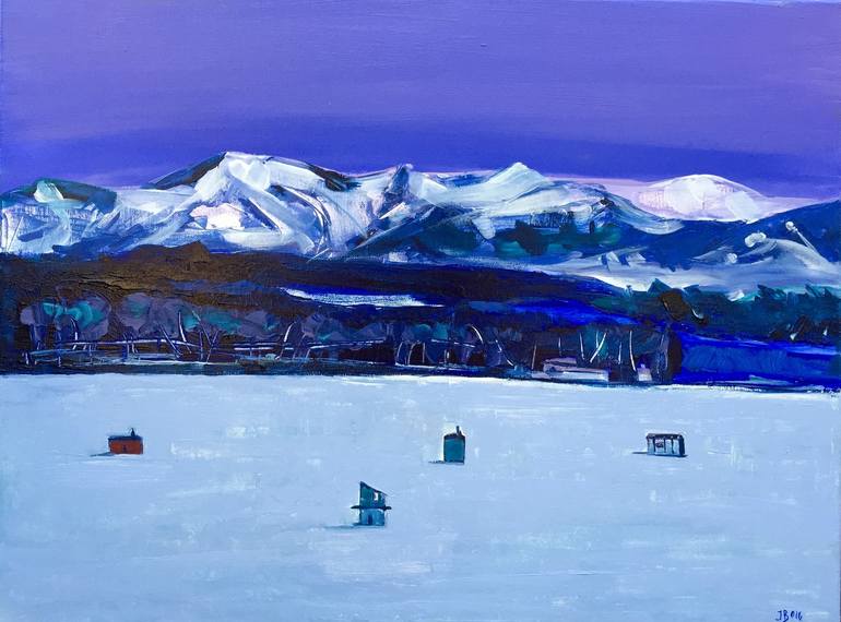 Inspired by my hometown of Sebago Lake, Maine during the peak of winter. Locals enjoy Ice fishing in the area since the ice gets very deep during the winter months.