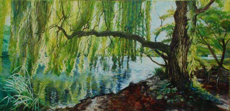 I was visiting Syon House and I stumbled upon this beautiful view in their vast grounds. It had a magical feel about it - the weeping willows brushing the waters banks. The sun was shining through the trees and catching the reflections in the water. I sat and did a few sketches and took photos then ...