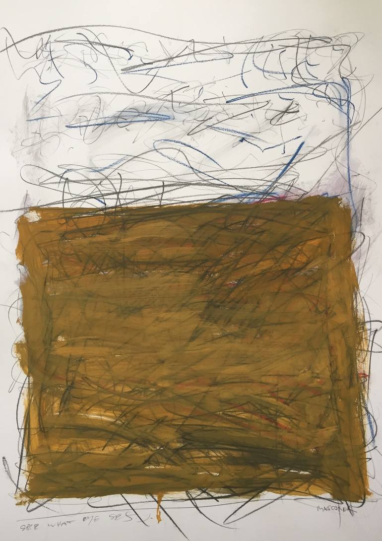 An abstract landscape looking at how we treat the land, and environment. Completed as one in a series, where I had been 'unlearning how to draw', opening up the freedom on stroke and line is controlled within space but free in form. I enjoyed creating this work as it felt like a rush of activity, m...