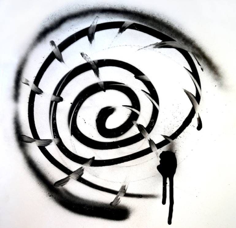 Abstract expression with fast motion movements of action painting along with minimalism and pop art echo like a drop in water with artist David Chevtaikin's painting "Seeing Eye 2 eYE" 2017