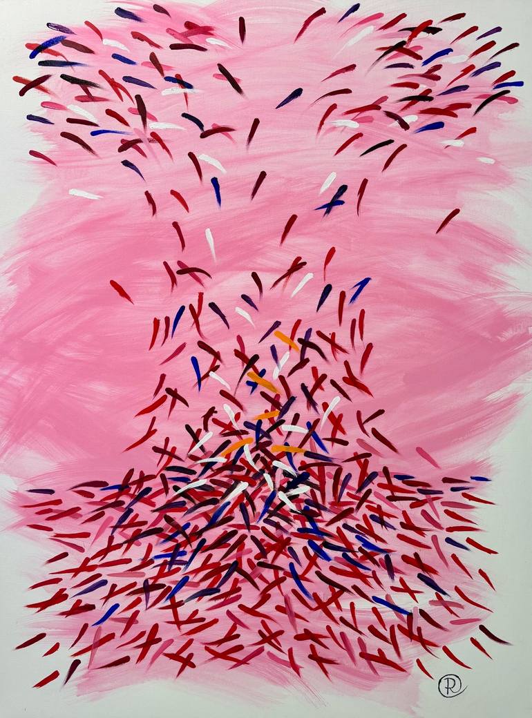 'Seeing Red' is an abstract expression or social statement inspired by the explosive, political landscape of these tumultuous and fiery times. I paint with bold, over-lapping brush strokes and vibrant colors against a soft background using a broad-brushed wash of color. My hope is to provoke an em...