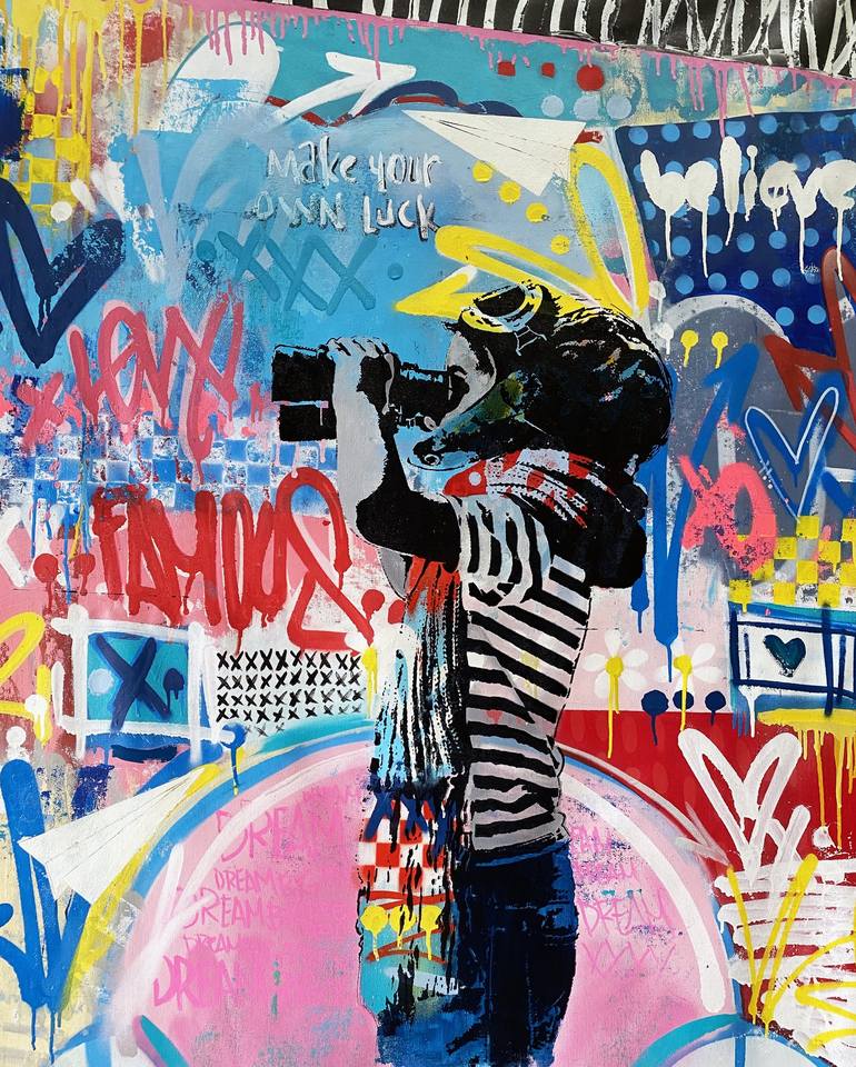 Seeker Series: "Make It Happen" is inspired by the confidence to be yourself and the success which attends the seeking after it – not the possession of acceptance. Look for the ones you can not fool. Approached in layers, this painting uses custom hand-made stencils with layers using acrylic, spray...