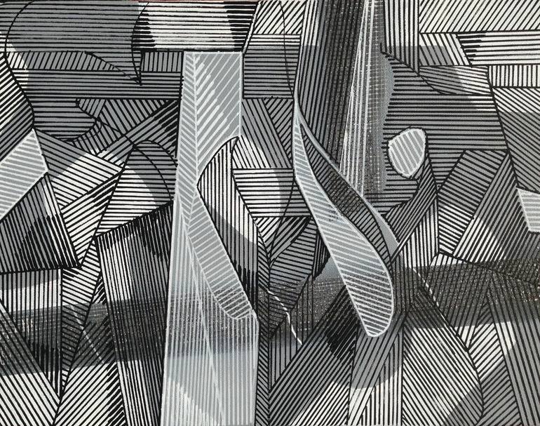 Acrylic painting with a composition of line, pattern and color.