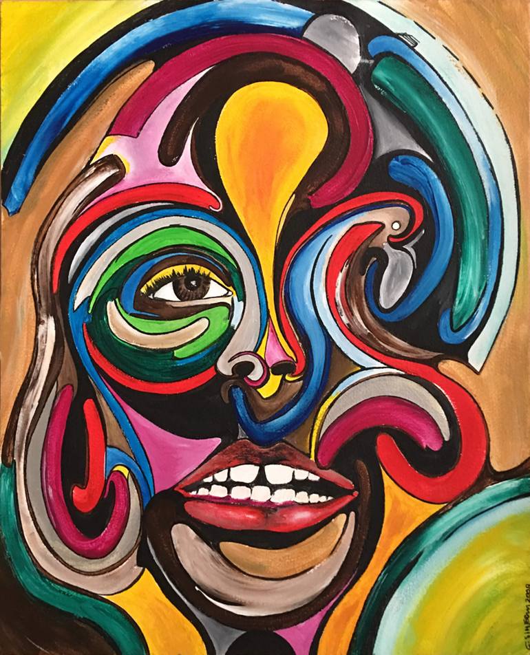 (Year Created: 2015) Carlos Simpson’s Self-Fulfilling Perception is a visceral meditation on identity, cognition, and the performative nature of reality. The face—distorted, fractured, and assembled through sweeping ribbons of saturated colour—emerges not as a singular identity but as a psychologica...