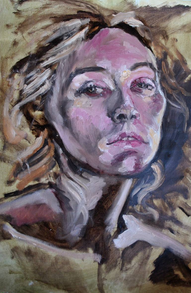 I am in love with the concept that we all have a raw and recognizable sincerity within. My paintings are my attempt to expose that sincerity. As an artist, use my body as a means of researching what it means to be human in our materially based society. Painting in the nude touches on issues of sexuality and body image or how I represent the figure in context to culture within my art. For me, the nude figure represents fundamental and instinctual behaviors, it strips us down to what we really are. In painting I focus on the materiality of the body as terrestrial beings who's behaviors and postures are automatic yet communicative. I have developed a style that is intimately provoking. The subject is usually engaging the viewer, telling and questioning, screaming yet silent. Often the poses are reminiscent of animal postures and squatting figures of cultures unlike our own. Although they evoke a rough, raw and earthbound creature, they also emulate an emotional presence. It is straightforward and guttural.