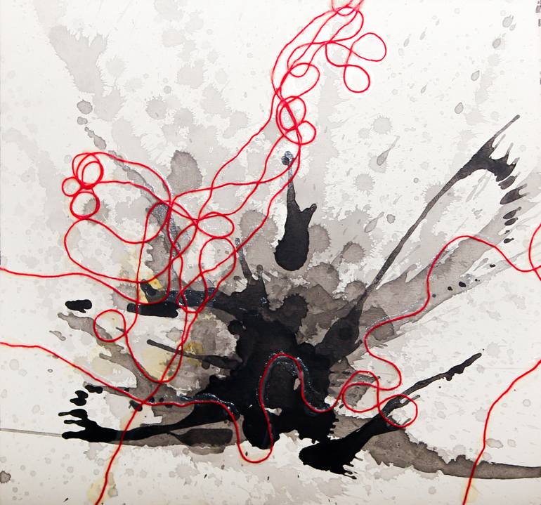 The materials I use in my work are acrylic paint and thread. With these materials, I create abstract images that can take the viewer on a semantic journey. I don't want to use explicit forms. Because distinctive forms limit the meanings that the audience can produce in their own mind.