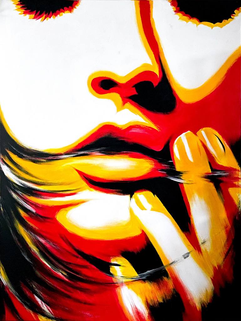 Breathless, suspended, distracted faces, celebrated a moment before the discovery of the soul. In her paintings, immediate and passionate, the chromatic compositions seek to capture the precision of a line, a stroke that unites the multifarious expressions of an inspiring muse. A sudden glow, "pop ...
