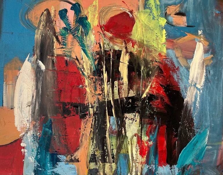 "Sentimental Journey" is a colourful, dynamic acrylic painting on canvas - abstract, expressive and gestural. A true statement piece of art. It is signed on the back so it can be hung depending on the buyer's taste. Title and creation date are also noted on the back. The painting can be hung direct...