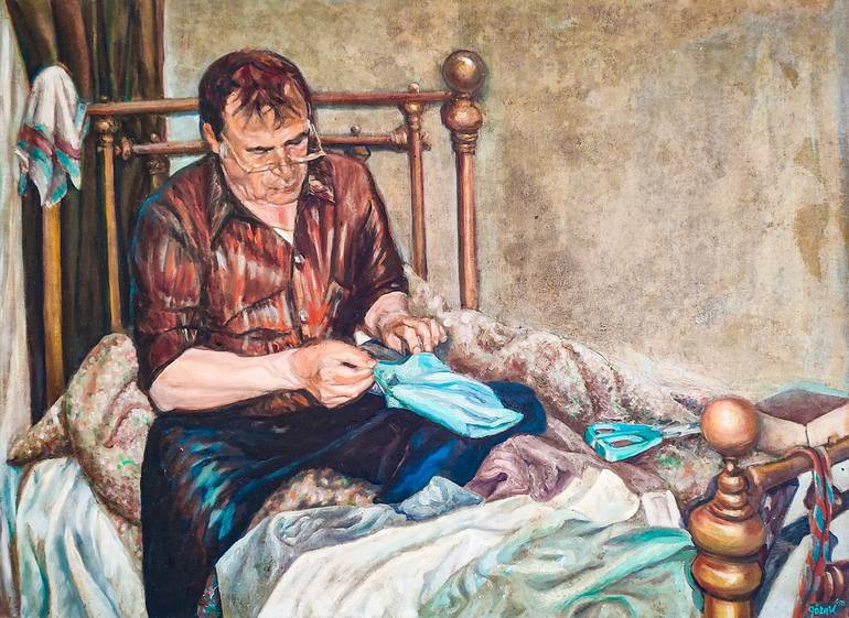 SEWING ON YOUR RIP By Göknil Gümüş Sungurtekin View on Saatchi Art A Tender Memory of Self-Reliance This artwork is a heartfelt tribute to the quiet dignity found in simple, personal moments. Inspired by the artist’s father—a self-made, self-taught, self-reliant man—Sewing On Your Rip captures a sc...