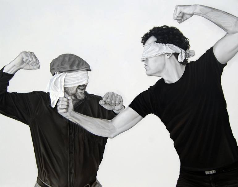 Michael Harris is an oil painter, song writer and world traveller from Toronto Canada. He is self taught, having never sought out formal training in art. Following a brief stint studying graphic design at college, Michael turned to travel for inspiration and adventure. Several months of immersion in the galleries and culture of Europe at 19 was followed by a year of travel in Australia at 21. At 24, to mark his transition to the ranks of professional artist, Michael took his paints and palette on a year long trip around the world - painting his way through Hong Kong, Thailand, Australia, Nepal, India, Greece, Turkey and the UK. Between trips he honed his skills as a working artist, doing everything from reproductions for an international art company and illustration to portraiture, murals and other private commissions. Michael has spent years developing his approach to painting in oils. The focus of his current work is his enigmatic and provocative figure paintings which include his sepia and silver series and his series of multiple climbing and flowing figures. Michael's work is influenced by his interest in psychology, media, consciousness studies, politics and the Integral Philosophy of Ken Wilber.