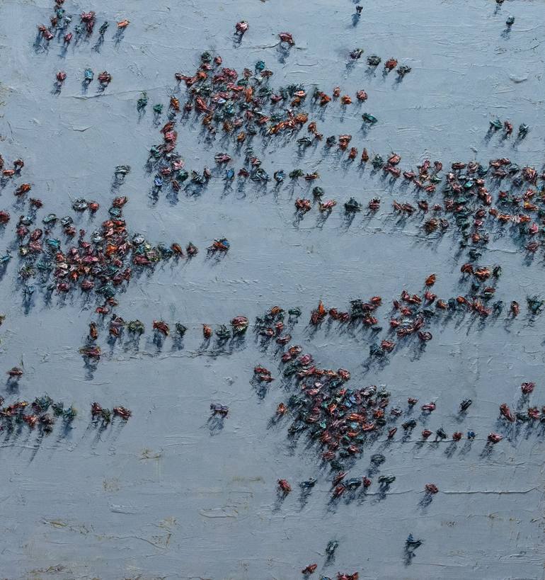 Born in Tbilissi, Georgia, Merab's attraction to painting started very early. At the age of 10 he already knew he wanted to be a painter. After completing his studies at the Tbilissi State Academy of Arts, he moved to Belgium to further his Arts studies at La Cambre Academy first, and then at the Academie Royale des Beaux-Arts in Brussels. Due to historical family ties, Merab spends his whole youth and childhood in Georgia with artists. By the age of 25 Merab does nothing else but follow his passion. He participates in various group exhibitions and has his first solo show in 1993. His style has evolved with time. From very traditional motives and patterns his painting has undergone radical changes both in its spiritual as in its physical conception. In synch with time and space, he has added a new dimension to his works in the form of handmade acrylic figurines. This addition has allowed the artist to push further the technical boundaries imposed by his art and add both a new 3D dimension to his paintings and a way to play with the shadows created by the figurines, sculpted on the canvas. According to Merab, shadows shape, provoke tensions, disturb tonalities and give depths that would otherwise be missed. Merab currently lives in Brussels .