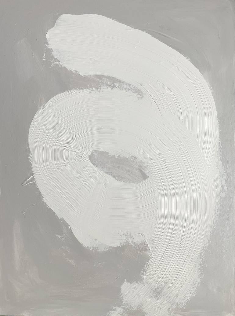 A simple, gestural shape on a cool background. Look closer and you see the rich texture and color variation that elevates the piece and adds interest.