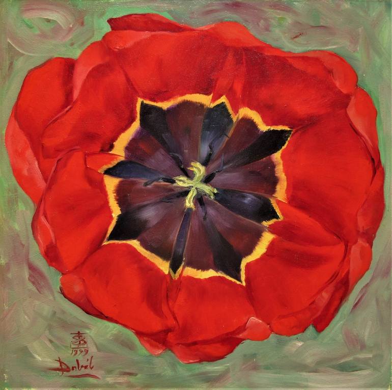 The painting depicts the geometry, shapes and colors inherent in the structure of the plants. Material: oil, wood