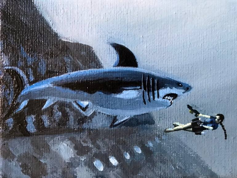 Shark Beside being a traditional painter, I am also a full time video game developer, a 2D artist. Tomb Raider was, and still is my favourite video game of all time, Lara Croft is my icon! So I decided to make a small sized painting series to pay my respect and immortalize my favourite moments of t...