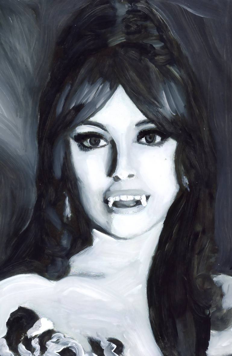 During the pandemic I started creating Icon paintings for the Artist Support Pledge. They are all paintings of people that have inspired me. They are painted on Yupo paper and mounted on board. This painting is of actress Sharon Tate as a vampire.