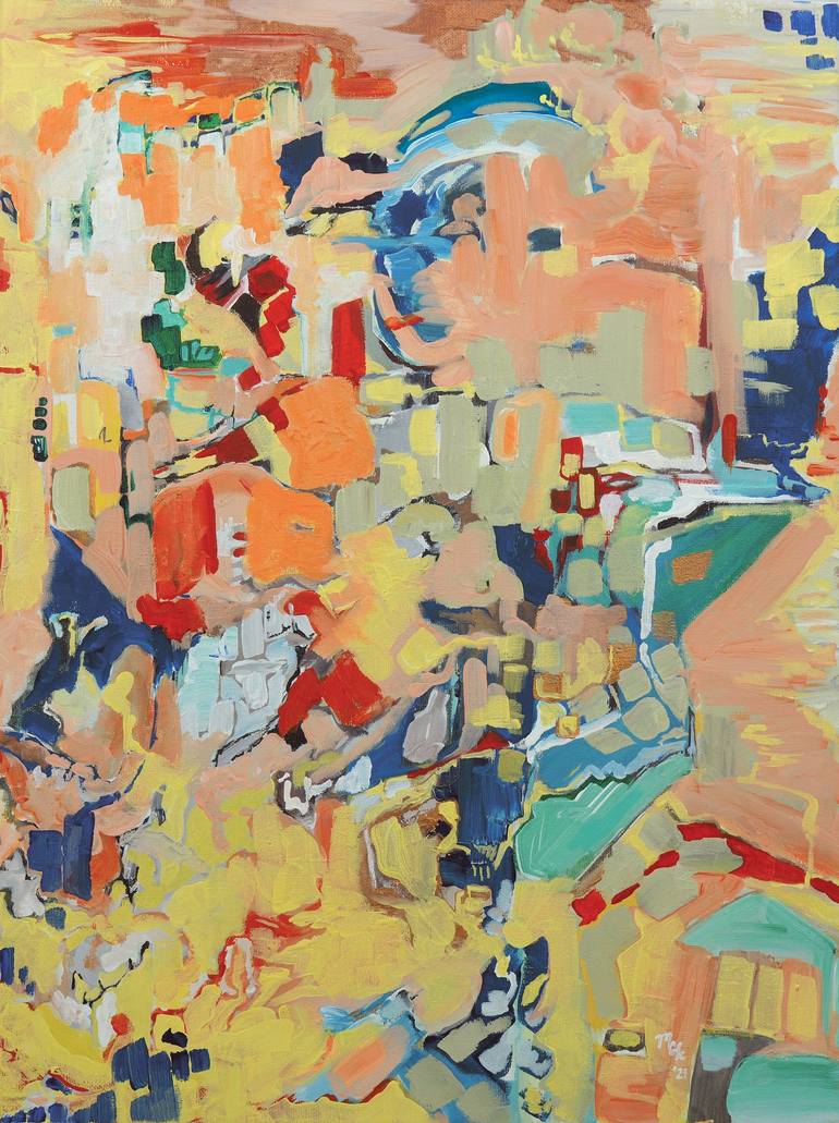 An abstracted representation of the cognitive shift that occurs as hope springs anew, in the context of the changing of the seasons; a vernal celebration. The bright pallet depicts an uplifted, exhilarated mood. The physical movement of the painting renders the subconscious attitudinal shift felt at...