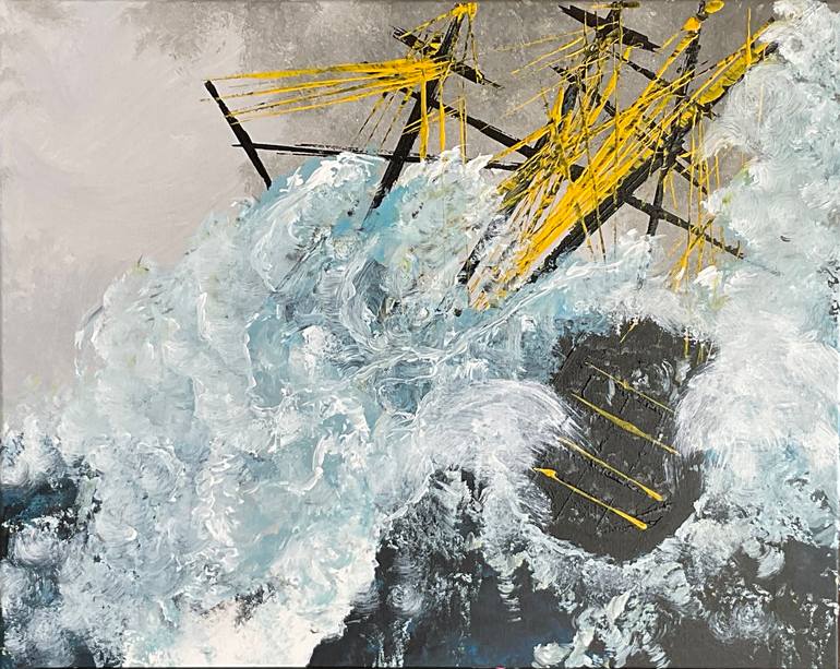 Commissioned by a private collector, "Ship. Wrecked." was inspired by an old seafaring tale the collector was reading about a fateful attempt to round Cape Horn at the southernmost tip of South America where the currents from both the Atlantic and Pacific Oceans converge. The painting portrays the e...