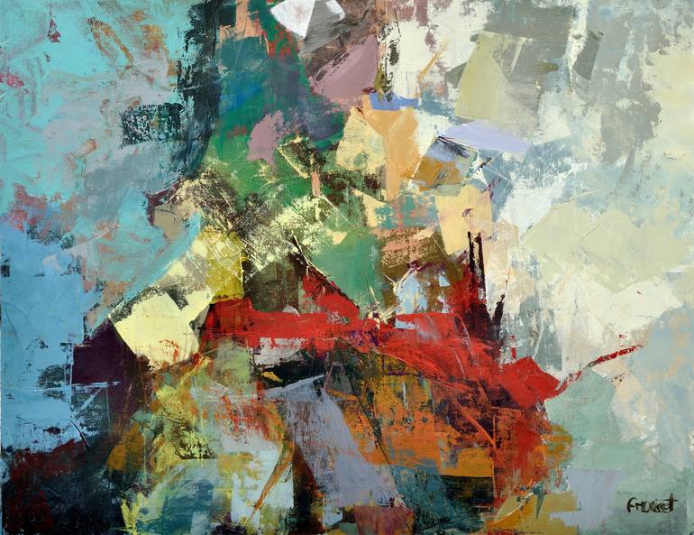 I was born in Montreal and as a young adult, I started studying fashion design and I traveled into different countries. When I came back I studied makeup art and I explored costume design for a theatre company. In 2002, through a training workshop with Francine Labelle and Yves Durand, I discovered a deep inspiration for painting. Forms and colors, my allies forever, then, acquired new textures. My work is appreciated by people from here and elsewhere. My paintings are already in North America, Europe as well as in the Middle East. "Painting combines my desire to play with shapes and colors while living the challenge of giving them justice. The impact of these, allied to the movements, allows me to express memories by inscribing them in the material, in a form of alchemy. These traces that sculpt, amassing textures, I wish them surprising, amazing. My study is on a range of colors that harmonizes in complementarily. One color calls for another. As the attention of the present moment, I accept, to remain there, to see, to miss my target, to go out, to come back, to go back, to immerse myself, to return and especially to continue. Round after round, I seek this ultimate happiness that is the state of alpha, the one that allows me to inspire a movement and expirer the spontaneity of the gesture. Then, I live infinite freedom. Florence Morissette