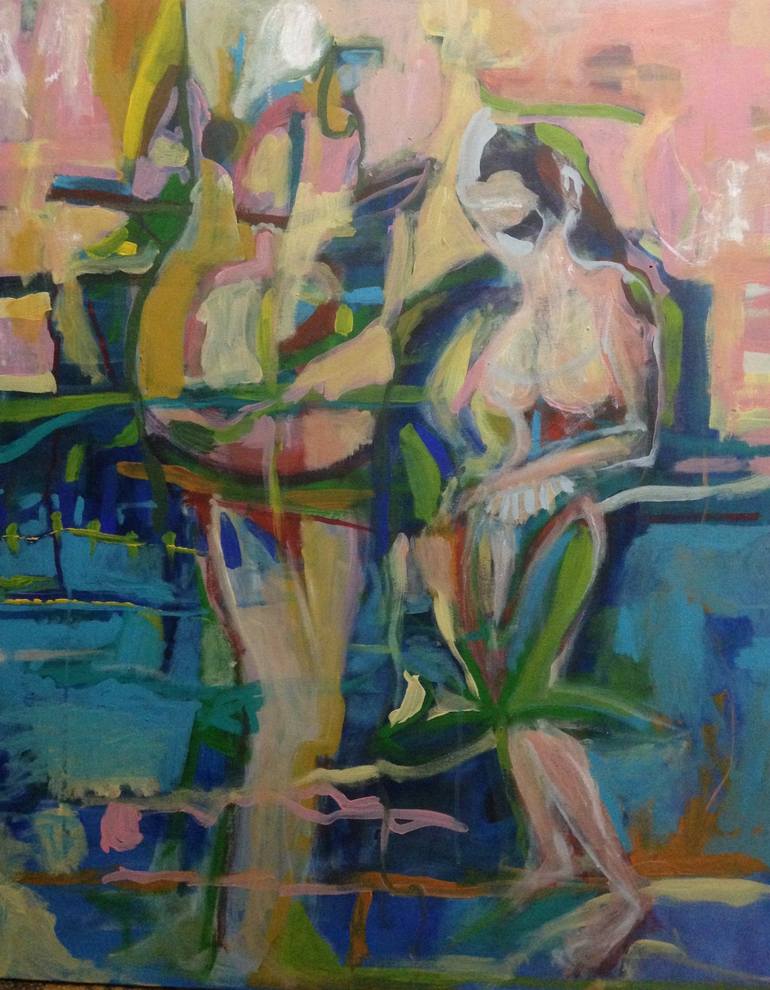 This piece is based on the images of the Indian God and Goddess Shiva and Shakti. I painted them portraying their separate whole entity while interacting with the other's whole world. Acrylic is an immediate quick drying medium. The piece I painted in one go.