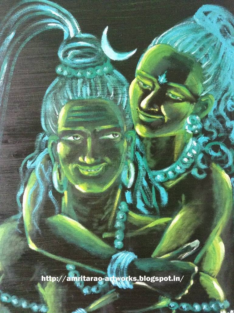 The third in the Shiva Series. This painting depicts Lord Shiva of the Hindu trinity as a gentle householder. The color green is of fertility and peace.