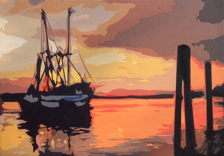 Shrimp Boat leaving dock at sunset