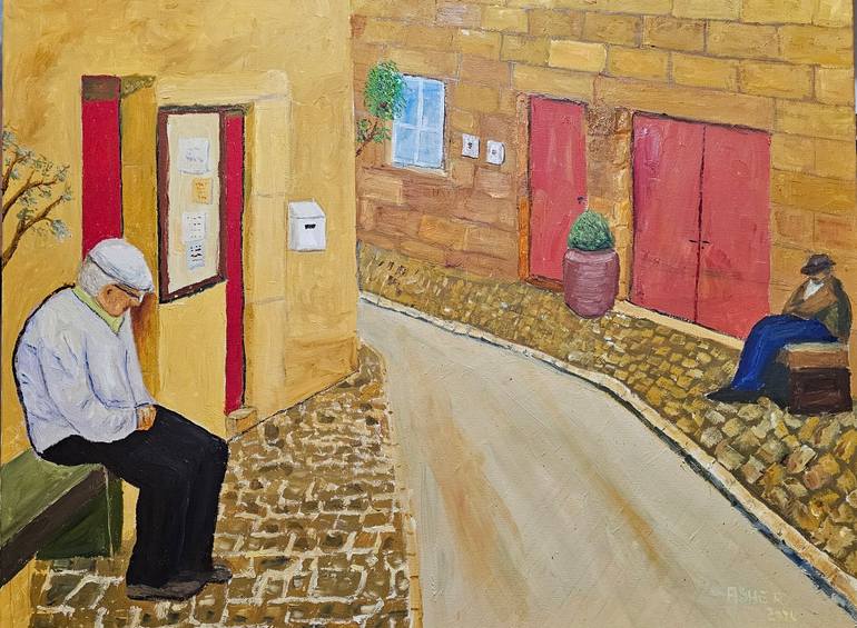 Pure imagination. A quiet street... Two elderly people take advantage of the good weather. peace and silence