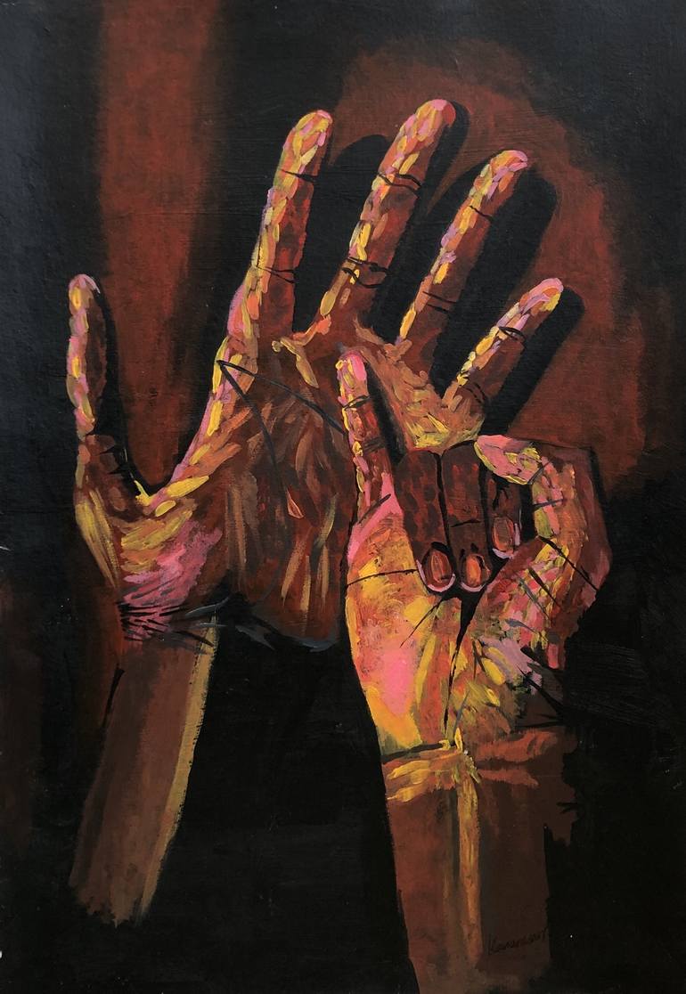 This work is inspired by Paul Wright, an artist who specialises in impressionism. It depicts a pair of hands that are held in a particular way, to highlight how fascinating the human form is. It is done in a similar style to Paul Wright's works, but with certain differences; the brushstrokes are not...