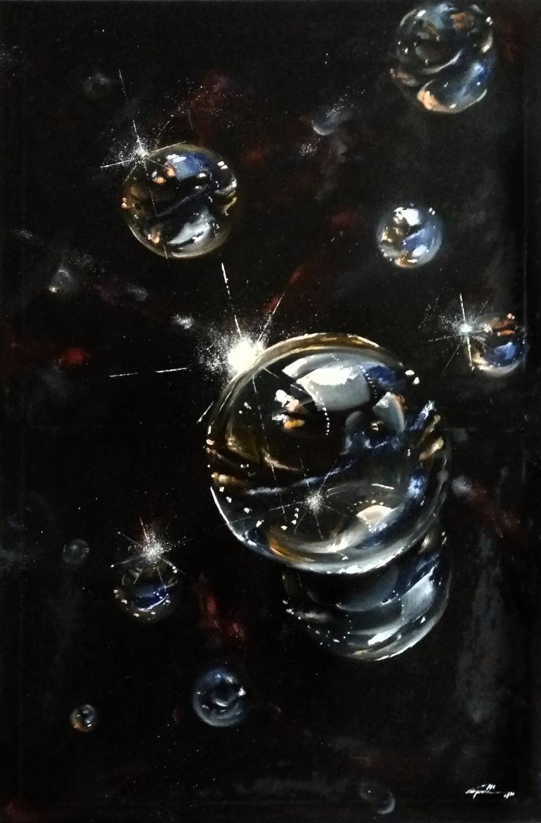 Hyperealistic canvas, soap bubbles floating in the space, pronounced aesthetics that make the space modern especially without additional frames, dimensions 90x60cm, 280 gr. canvas
