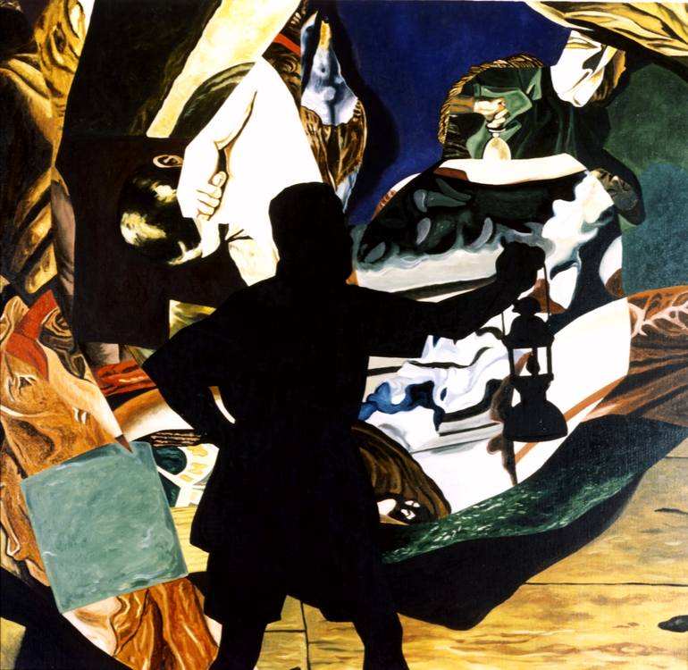 I went to art school in the late 1990's. after which I have been active as a painter Since about five years my painting has been taking a new direction about which I am very enthusiastic. The results of which I like to share with you on Saatchi. The figures in my work are absorbed in their own world. Often there is a link with science (mathematics, astronomy). They employ strange devices that resemble telescopes, musical instruments, typewriters or binoculars. They seem to investigate their world, diving into it and trying to make sense of it. Not unlike the beholder of the paintings that capture them. Often they only possess one eye and in that respect almost all of them are cyclops. So, in a sense they are handicapped, but they try to overcome that handicap by using technical aids. The “one eye only” is also a reference to the flatness of paintings that seems to represent (a) space: in order to see three dimensions one needs both eyes. The inspiration for my work is mainly formed by distractions from reality. The paintings are based on reproductions of other paintings. Non-heterogeneous elements are arranged next to each other in collages, which are then form the basis for a painting: a kind of "sampling" so to speak. A form of appropriation that is based on the realization that so much has been done before, that you can also create something new by pouring existing shapes into a new mould. My work, my paintings and collages, comes from a great interest in the artificial, and, in particular, two of its characteristics: the derivative and the fantastic. "derivative" means to me: Reality in a compressed (perhaps abstracted) form. For example, a reproduction of a painting or a map of a city. "fantastic" refers to the artificial fantasy. For example: the monster of Frankenstein or some paintings by the surrealists. This personal definition of artificiality forms the basis of my work. Sometimes accidental, sometimes fully conscious. Often in the execution of my paintings, often in the underlying themes or ideas.