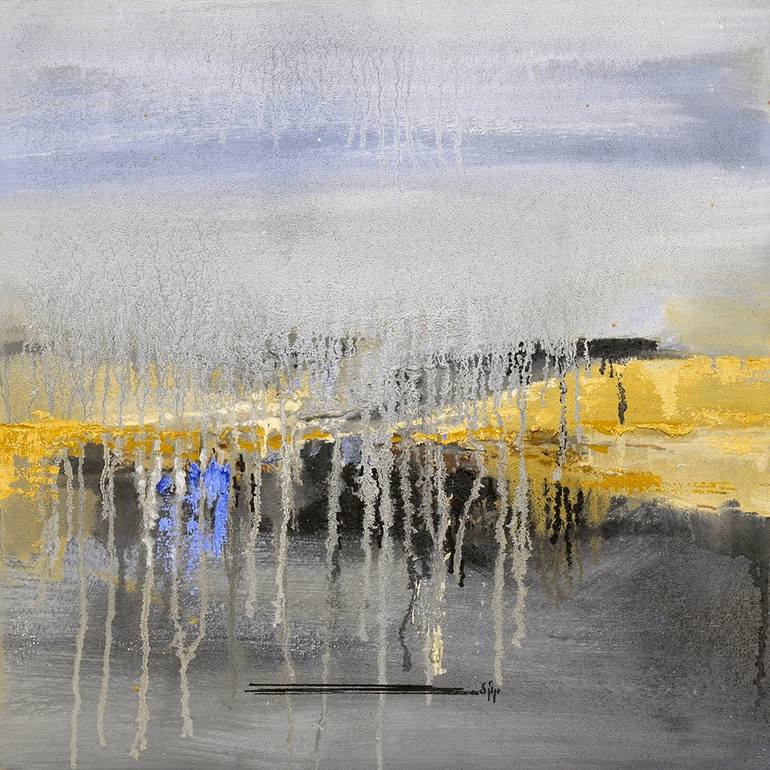 "Silver Rain" is an abstract artwork by famous Armenian contemporary painter Shamir Shahiryan. The canvas appears to be drenched in a shimmering, silver cascade, as if liquid gray and silver were frozen in time. The composition is devoid of any discernible forms, allowing the viewer to interpret the...