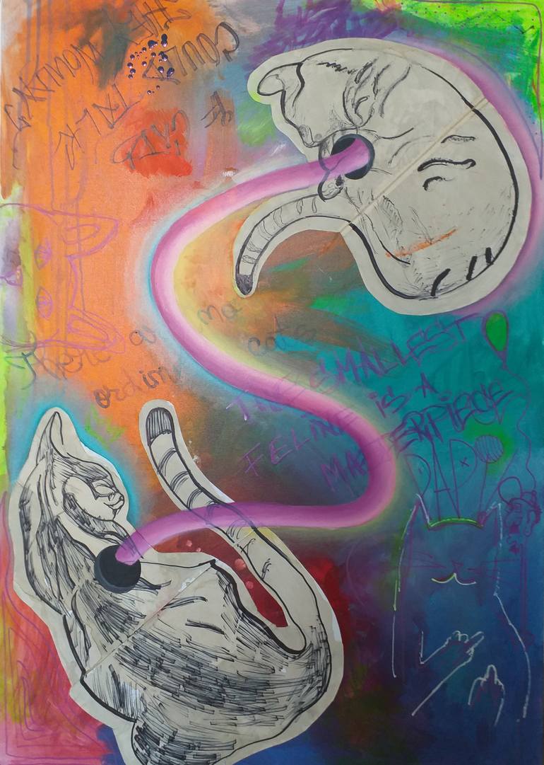 This piece is dedicated to all cat lovers that lived through the harsh experience of departing from their beloved pet. The piece was made after the death of my cat, Sisi, and it represents the passing from the physical world towards the spiritual. I could say that painting helped me overcome the tra...