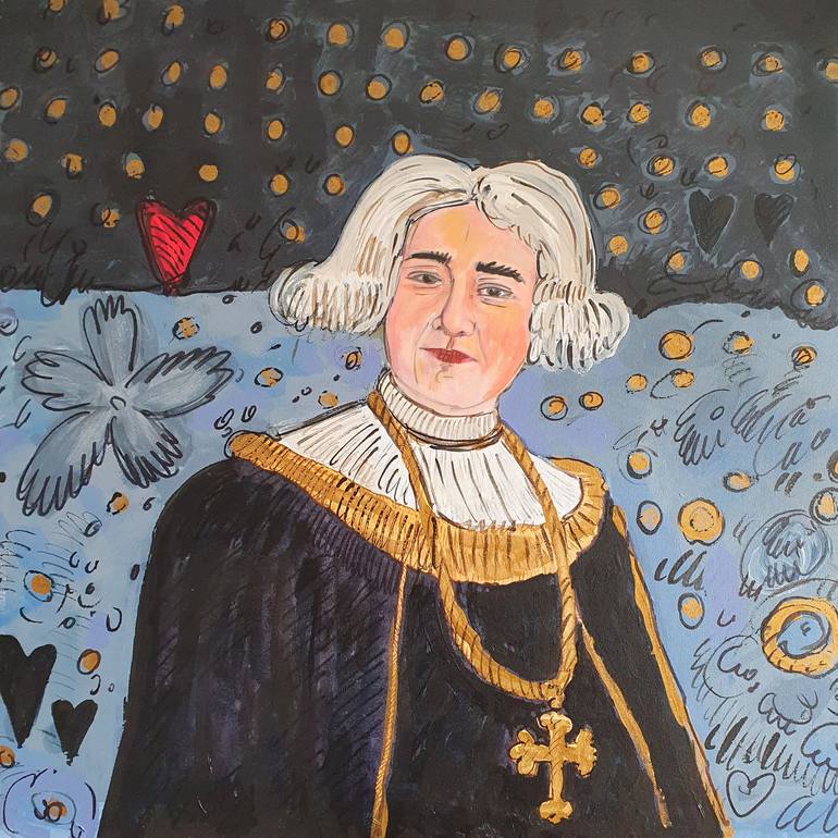 Fiorentina Giannotta (New York, 1964). Fiorentina Giannotta's poetics is characterized by a mix of history, irony and a lively exploration of colors and materials. Her works celebrate imperfect and ironic characters, immersed in imaginary and decorative landscapes, which invite the viewer to a visual and emotional participation, rather than a mere contemplation. Giannotta's characters, often inspired by historical figures or fictional protagonists, are conceived as "imaginary ancestors" with whom to establish an emotional companionship, creating a sense of personal connection and almost pleasant obsession. This choice is influenced by the ironic potential of the characters themselves. Elements such as lace, buttons, ribbons and bows add humor and lightness, making the works accessible and fascinating. Giannotta's influences range from great painters to novels and fiction, combining to create figures that express emptiness, rebellion and imperfection. Flowers and slogans are recurring elements in her works. Flowers, used as a decorative background, create artificial landscapes that reinforce the idea of an imaginary world. Slogans, such as “live, laugh and love” or “I am not the Mona Lisa of the Louvre but the Mona Lisa of your home”, add strength and participation to the works, involving the viewer more. Giannotta experiments with various materials in addition to classic acrylics, using industrial paints that allow her to play with consistencies and transparencies. Her favorite colors, such as Nissan green, Barbie pink, Barragan pink, butter yellow, oyster white and iridescent white, allow her to obtain both watercolor and thick effects. This technique, together with the small squiggles made with ceramic brushes, gives her works a three-dimensional and dynamic effect, further accentuating the vitality and energy of her compositions.