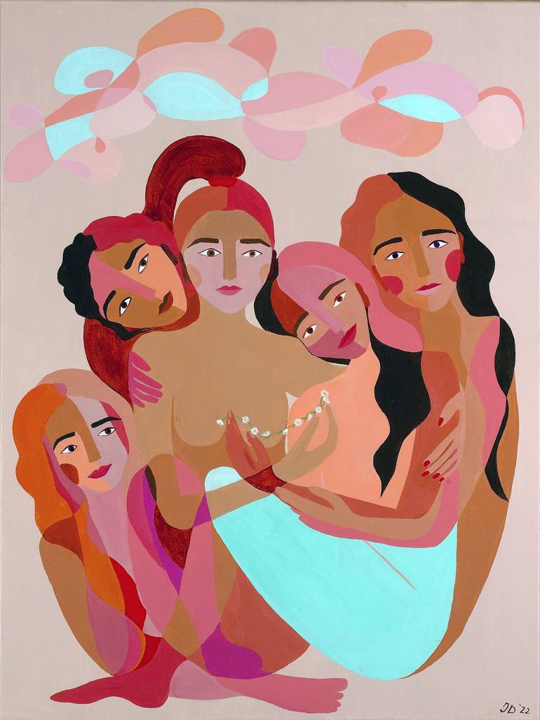 We moved 3 years ago from Amsterdam to another life in New York and then to LA. It sometimes feels like I am vulnerable all the time, naked in the wind without anyone really understanding. The painting represents what I - and so many with me in modern day society- need; a loving, supporting and unco...