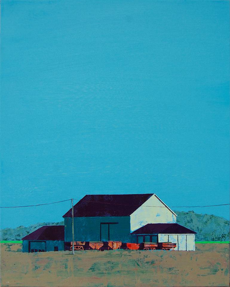 This painting measures 20h x 16w x .875d inches. It’s painted with acrylics on canvas board glued to a wood frame. This painting is about color, light and shapes. The abstract nature of this work is created by the expanse of blue sky, white highlights and contrasting shadows. The fluorescent green ...
