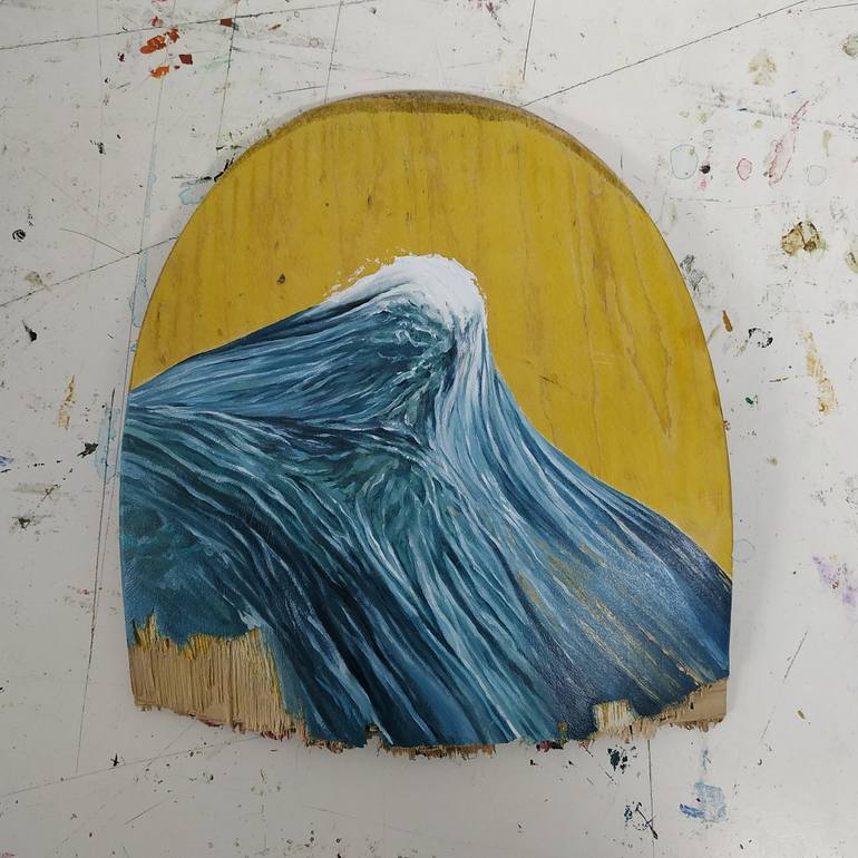Works that revolve around the waves and the sea. The artist uses recycled media to give a new life, such as in this case broken skateboards that give the work a different and original point. The importance of light, movement and colors stand out in these works.