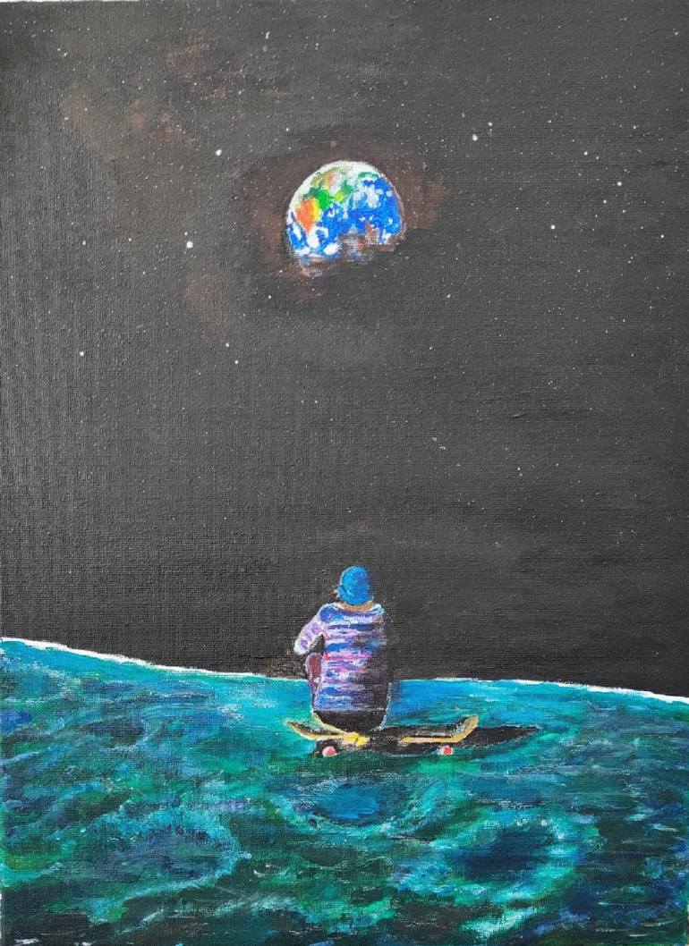 How the world changes inspired me - out of this world! The Mother Earth is resetting itself. My skater's vision represents technological advancement and the longing and hope of peace in this world.