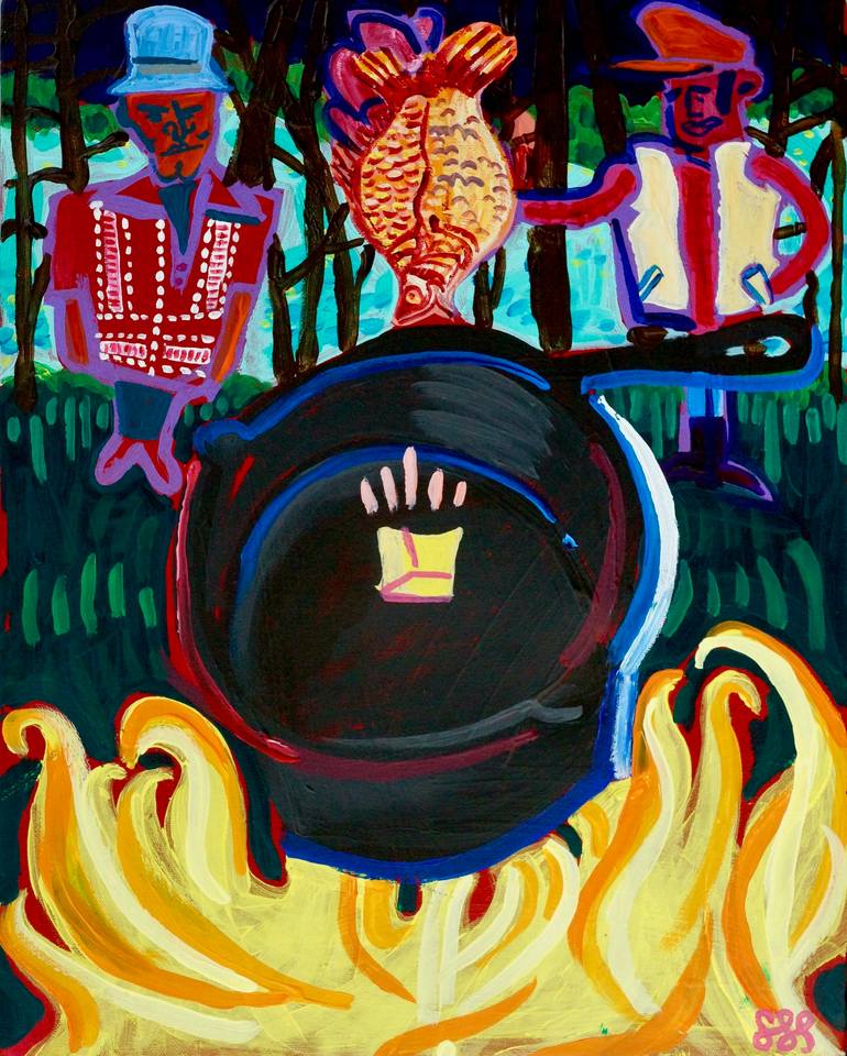 Steve Spencer’s outsider-influenced painting combines vivid color with humor and subtle compositional structures. Spencer uses the tactile, plastic nature of acrylic paints to create musical canvasses. His images combine representation and abstraction creating a post-modern mesh. He is drawn to popular culture, urban life, music, baseball, and the way our memories work. Many of his works appear obvious at first glance but reward viewers with deeper layers upon reflection. Spencer’s work has been featured in numerous publications around the world. In 2016, he was honored with a grant by the Arkansas Arts Council. He was selected as a Regional Artist by the Crystal Bridges Museum of American Art. In 2019 Spencer created the artwork for the Google Doodle honoring B.B. King. Spencer’s works have been featured in museum exhibits, the National Pastime Museum, the Kellogg Foundation, a handful of boutique hotels and dozens of private collections across the U.S. Here's a link to the behind-the-scenes video for the Google Doodle: Behind the scenes video about the Google Doodle: https://www.youtube.com/watch?v=JTb4wUZhBRA Largely self-taught, Steve worked to create a deeply personal style. “I love outsider art,” Spencer says. “I developed a set of rules for myself: I could only use paint directly out of the tube. I could only use three brush sizes. I painted solely on cardboard.” He gradually loosened these rules, allowing himself to mix two or more paints together. "Starting with outsider art allowed me to work out the styles of representation that I was interested in." Steve began including sly nods to pop art, abstract expressionism, cubism, Matisse, Picasso, "You name it and I've probably slipped something in. I am unashamedly post-modern. But always in the service of a fun, balanced image." Painting means a lot to Steve, and his works populate the walls in the Little Rock, Arkansas home he shares with his wife and two children. "People kept asking if they could buy my stuff. One day I finally said Why not?" "Intriguing work; Exciting; playful, great use of color and extending space; Very heartfelt. Complex compositions; social commentary; Funny, playful, pop culture references that connect. Very sophisticated." Judges' comments from panel of judges, Arkansas Arts Council.