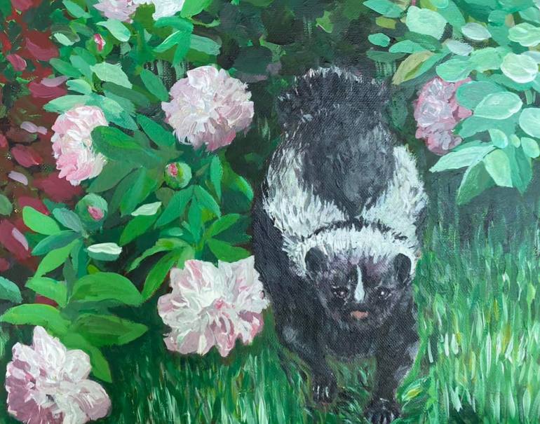 During the quiet days of the pandemic, urban wildlife thrived in my Toronto neighborhood, moving more freely through gardens and green spaces. One day, I came across this skunk wandering among blooming peonies—a striking contrast between its bold black-and-white fur and the soft pink petals. The sce...