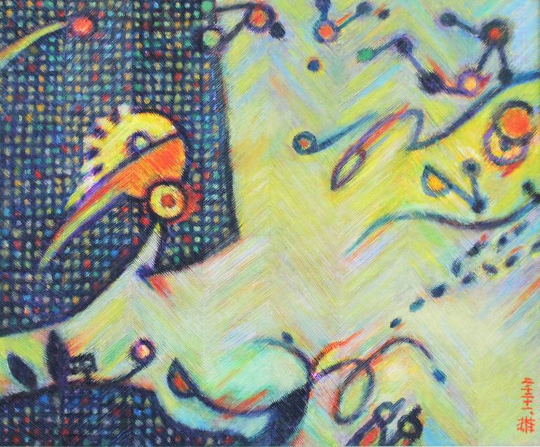 For a long time, I have been painting 'Sky and Land,' by symbolizing the sun, moon, stars, clouds, mountains, trees, etc. in one space. In the past, the landscape used to be my hometown, but recently it’s cosmic image from my imagination