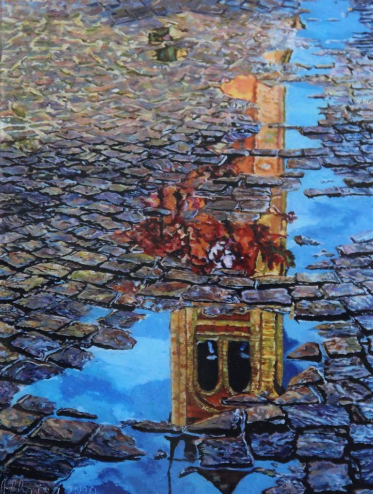 It's Allaisa's own style around a puddle. There are often cityscapes that you see in the water. Very often around the water cliff there are cobblestones. The old buildings of each city catch the eye with their timeless beauty. The technique of plasticine is suitable for these extremely precise image...