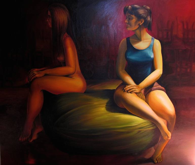 This art work is about the loneliness, and the self-search in another person or the same person in a different human been, is about the soulmates when sometime have to live separately and they stand so close in their mind. homosexual thoughts hidden in fantasies or reality.