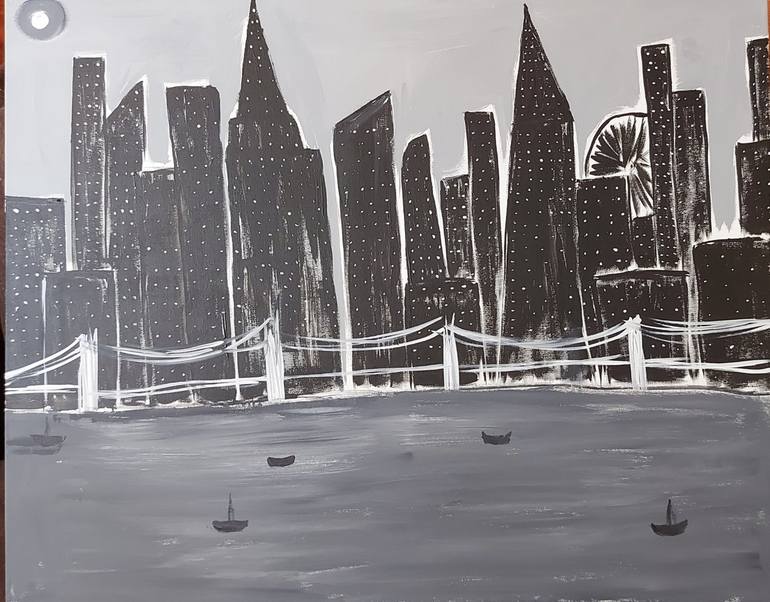 Skyline by the river Painting