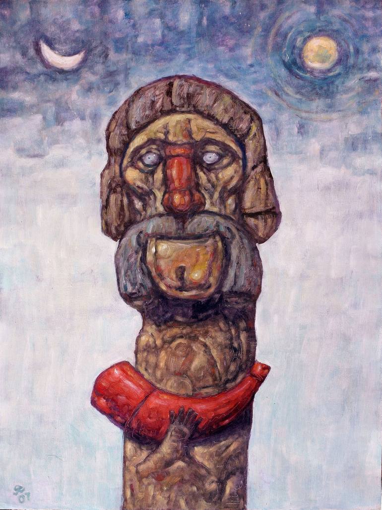 In ancient tribal times, the Slavs worshiped their gods. They offered them food and blood. Sometimes they made human sacrifices. Animal skulls were placed under the foundations of Slavic temples. Painting in oil brings the atmosphere of past times.