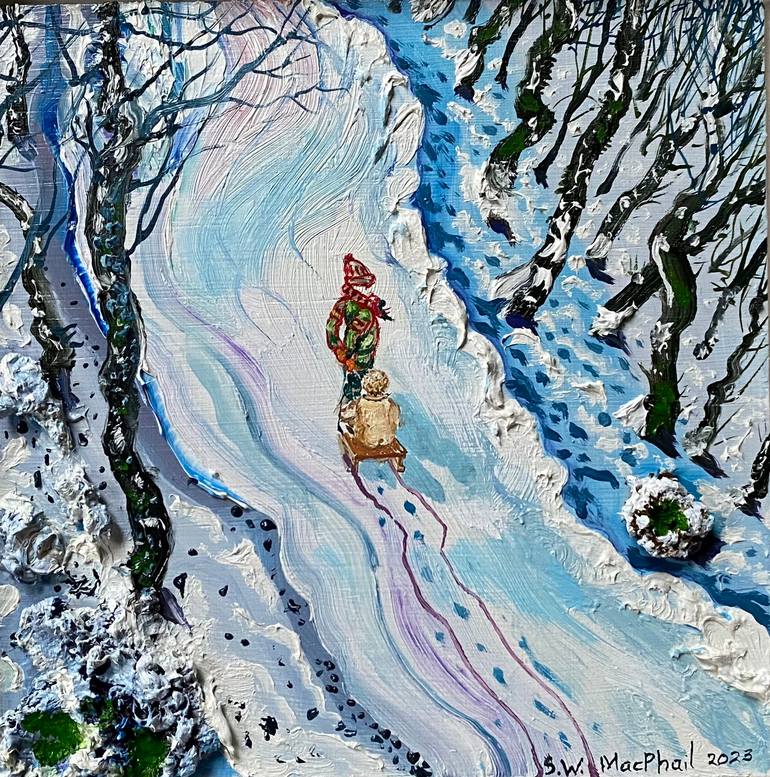 Painting from a drawing of my children. Conveying young life living in the moment. Sharing children's joy. using paint to create a physical empathy between the viewer and the painting.