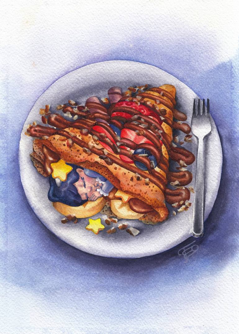 Shh, don’t wake her up! ( ̄o ̄) zzZZzzZZ A hand-painted watercolor illustration from the Tiny Eaters series. Can perfectly fit an A4 format frame (you may cut the extra borders).