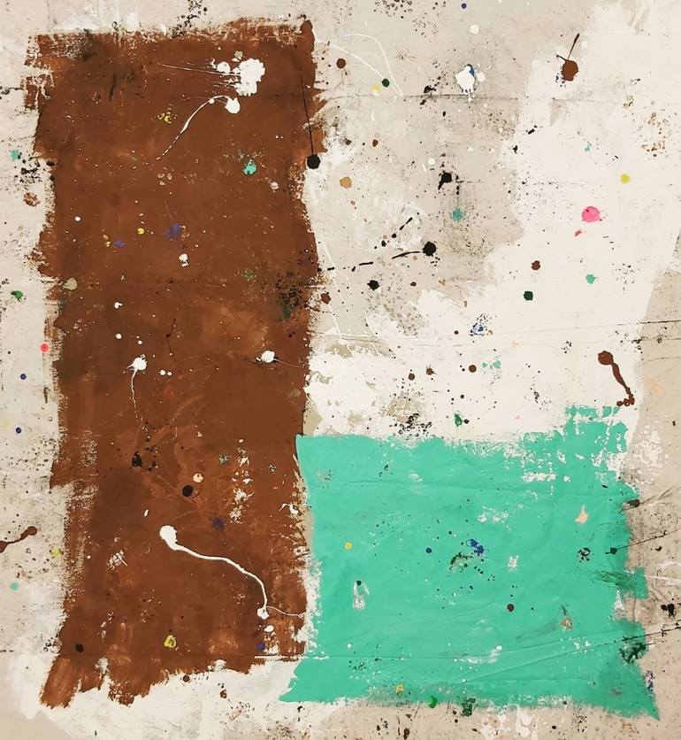Slip, 46 x 50 inches, acrylic and gesso on raw canvas, 2021.